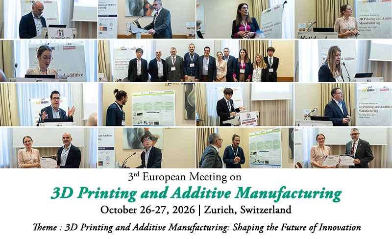 The 3D Printing Organizing Committee is pleased to welcomes you to the 3rd European Meeting on 3D Printing and Additive Manufacturing, scheduled for October 26-27, 2026 at Zurich, Switzerland. This prestigious gathering will bring together innovators, researchers, and industry leaders from around the globe to explore the latest advancements and future trends in additive manufacturing.